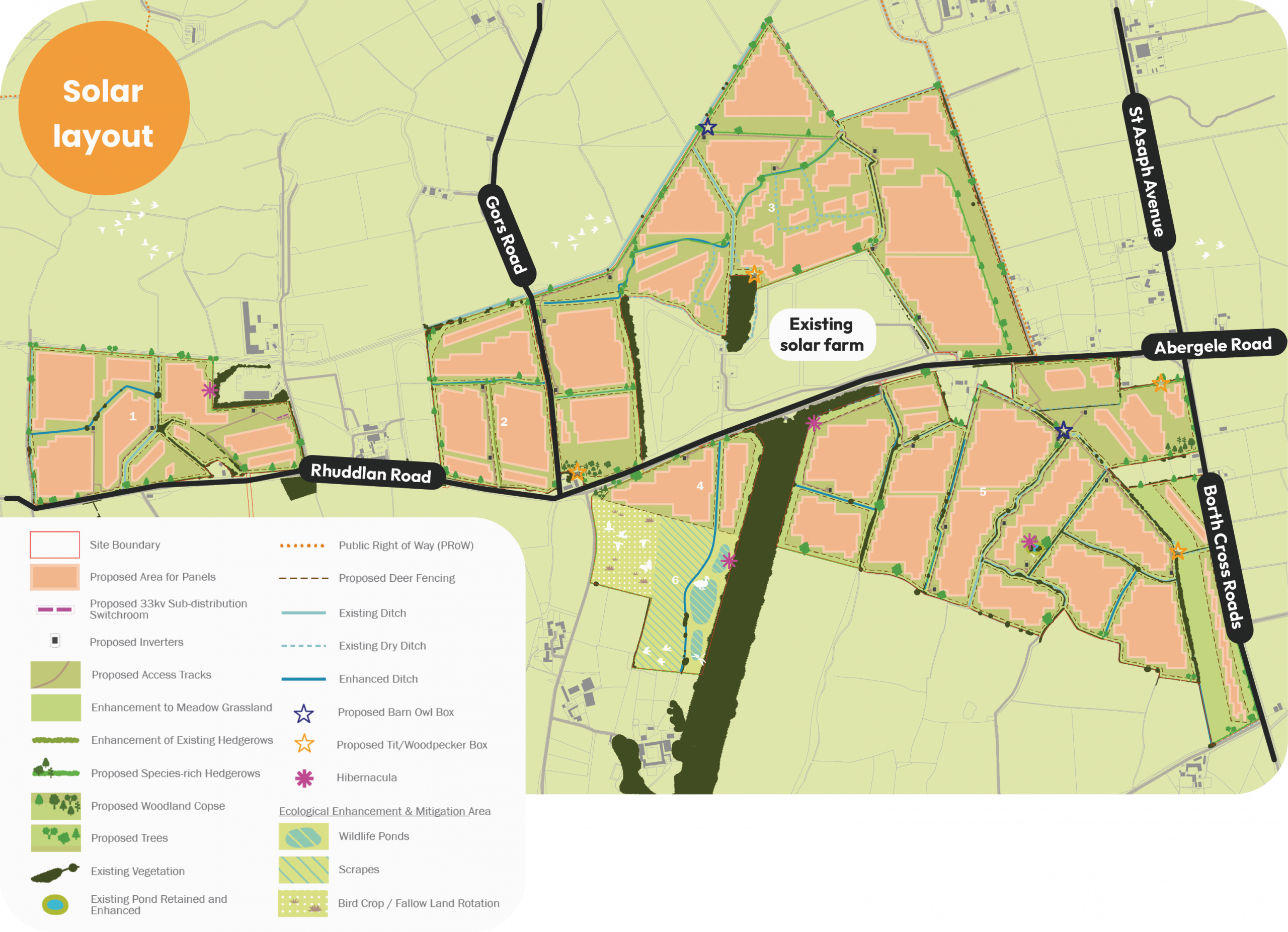 - The solar site is located at Land at Rhuddlan Road and has an overall area of 168.95 hectares.